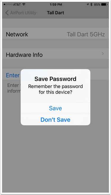 I believe this will put the password in Keychain and possibly iCloud Keychain if you have that enabled. Personally I don’t use Keychain, I use 1Password to protect my passwords, so I choose Don’t Save. The choice is up to you.
