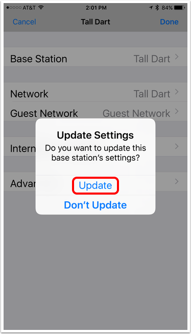 While your router is updating, you will see the status on the screen change and the light on the device will begin flashing orange before eventually returning to solid green after a short time (usually less than a minute). You’ll also see the indicator bubbles in the Airport Utility turn to green when the router has completed the restart and reconnected successfully to the network.