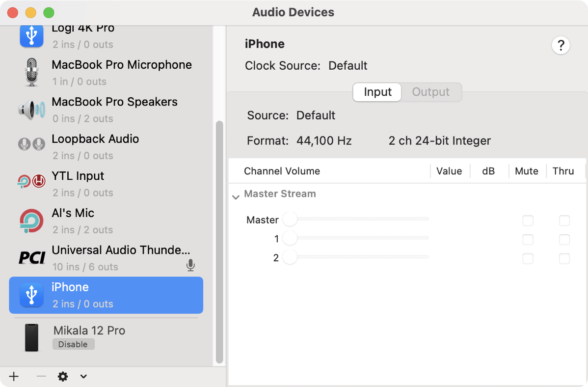 As soon as I read this I thought I had my answer. I can use Audio Hijack to grab my mic as one input and iPhone as the second input. Because now it’s available to me.