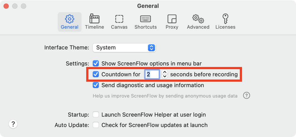 No matter what software you’re using to record your screencasting masterpiece, it will have a countdown timer before it starts to record. If you’re really looking to be more efficient, find the preference where you can shorten that time by a lot. I think it starts at 5 seconds on ScreenFlow and I turned it down to 2 seconds.