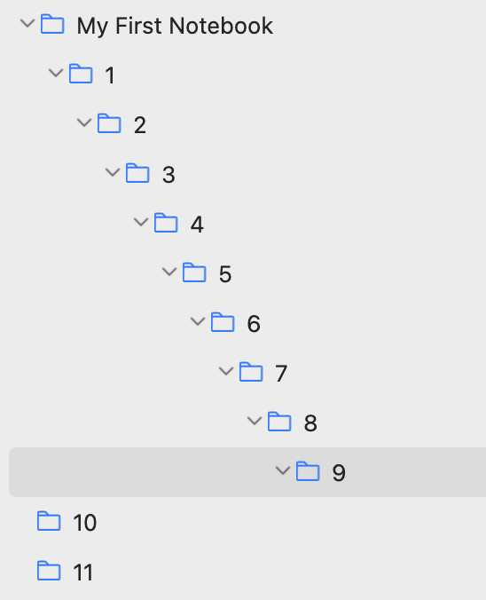 I mentioned that you can create notebooks within notebooks so I got curious how many levels deep you can go with Joplin. You can create sub notebooks 10 levels deep, but when you try to add one more, it puts the 11th one parallel at the top level. However, I think it might be a bug in the UI, because I deleted the top-level notebook that had the 9 sub-notebooks, and the 11th one disappeared too. So I think it IS still a sub-notebook but just doesn’t look like it.
