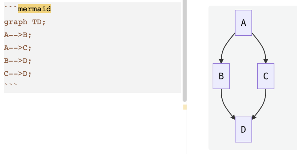 Mermaid is an open source diagramming project where you create diagrams using a normal text editor rather than a GUI where you draw boxes and lines. Creating diagrams with a text editor sounds weird, but so did Markdown when I first heard about it. An example of the syntax for Mermaid is if you write A-->B; you get a rectangular box with an A in it followed by a box with a B, with an arrow going between them. Take out the > symbol and it’s a straight line with no arrow.