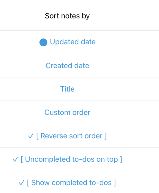 Notebooks don’t have as many sort options – you get sort by title and updated date. Not sure if more options are desirable as that would be enough for me.