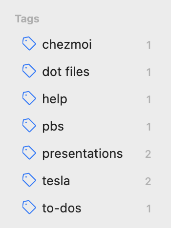 Bart asked me what options Joplin has for organization. I’ve already explained the folder structure, but Joplin also supports tagging. This allows you to have a single note tagged for discoverability in different contexts. While one note can only be in one notebook, it can have multiple tags. I read in the forums that people really want to be able to use Boolean searches for tags, such as photography and trains, but it doesn’t appear that’s been implemented yet.