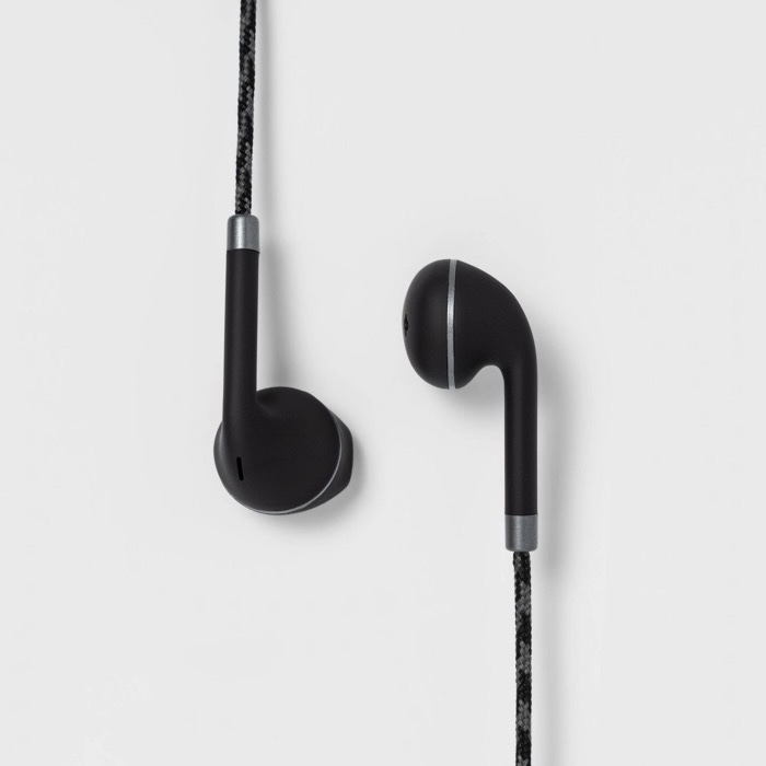 To set the level of expectations, these earbuds cost the grand amount of $19.99 USD MSRP at Target. These are not going to overwhelm anyone, but they’re also not ‘hawt gahbage’. They use the Bluetooth 5.0 spec, they have a built-in microphone (more on this later), and get eight hours of use time to three hours of charge time. The wire which connects the two earbuds is also wrapped in an attractive nylon fiber which is pleasing to the eye, functional, albeit a little noisy when using the mic.