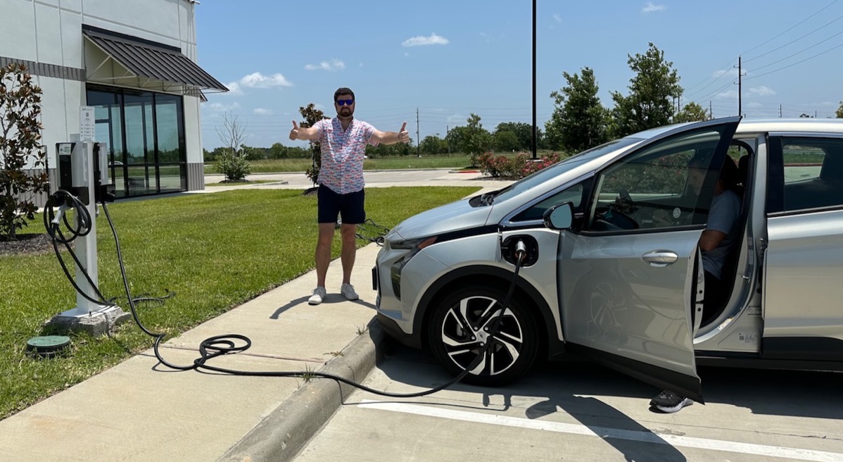 One of the problems with jumping straight from an internal combustion engine (aka ICE vehicle) to a Tesla is that Steve and I have no perspective at all on what normal EVs are like to drive or to charge. On our recent trip to Houston to visit our son, Kyle, we decided to rent an EV. Even though a Tesla Model 3 was available, we chose a Chevy Bolt so we could have that new experience.