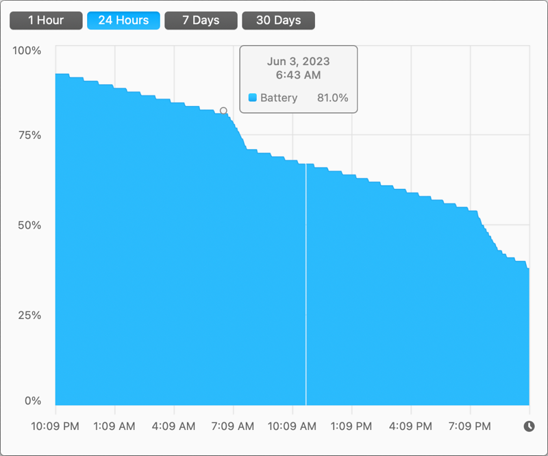In April of 2023, I began taking metrics as I worked with Apple. The laptop gets around 6 hours of battery on “wireless web”, which is amazing compared to an Intel machine, but it’s barely half of what it should be getting. Every person I’ve spoken to at Apple have said that this isn’t right.