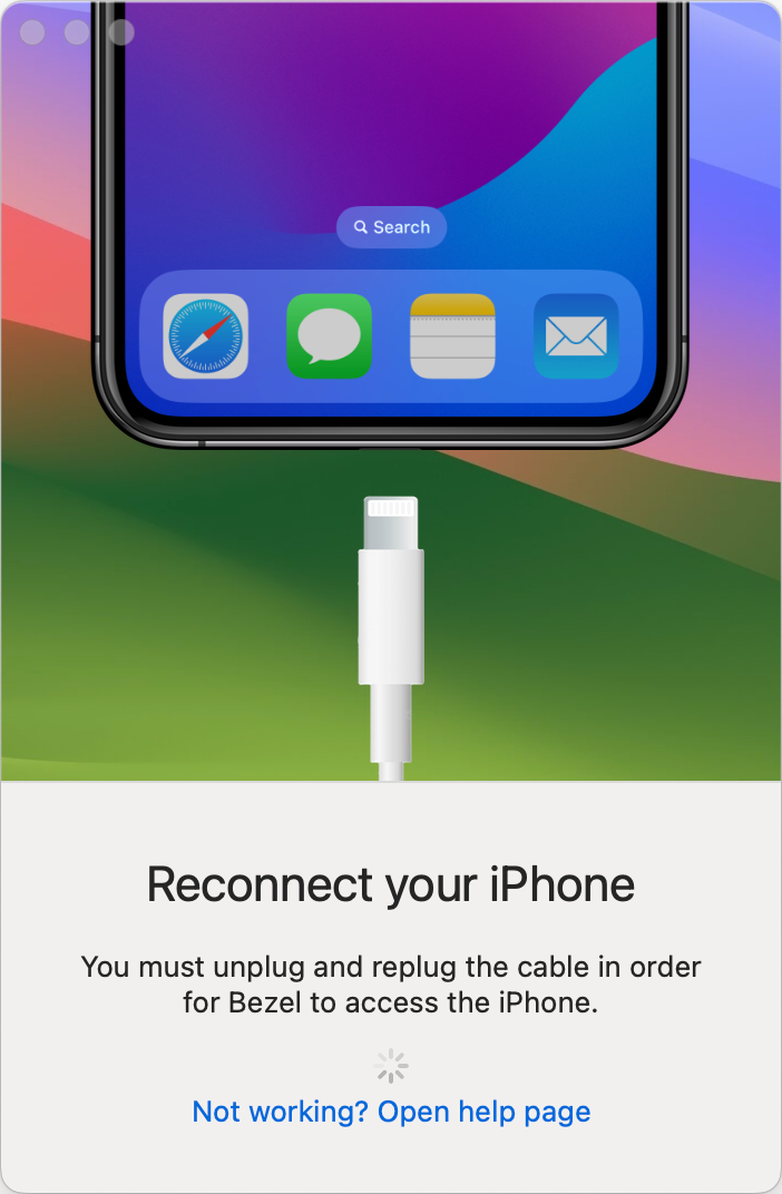 I set up a second phone, an iPhone 12 Pro with Bezel and it was a bit harder to connect than the iPhone 15 Pro. I’m not sure if it was because I had to go USB-C to Lightning instead of straight USB-C, or whether the older hardware doesn’t respond the same, but it was definitely fiddlier. I would plug it in and follow the steps to trust the computer and put in my passcode, but Bezel wouldn’t come back with the screen telling me to unplug and back in. After a restart of the phone and Bezel I eventually got it to work but it was surprisingly fiddly.