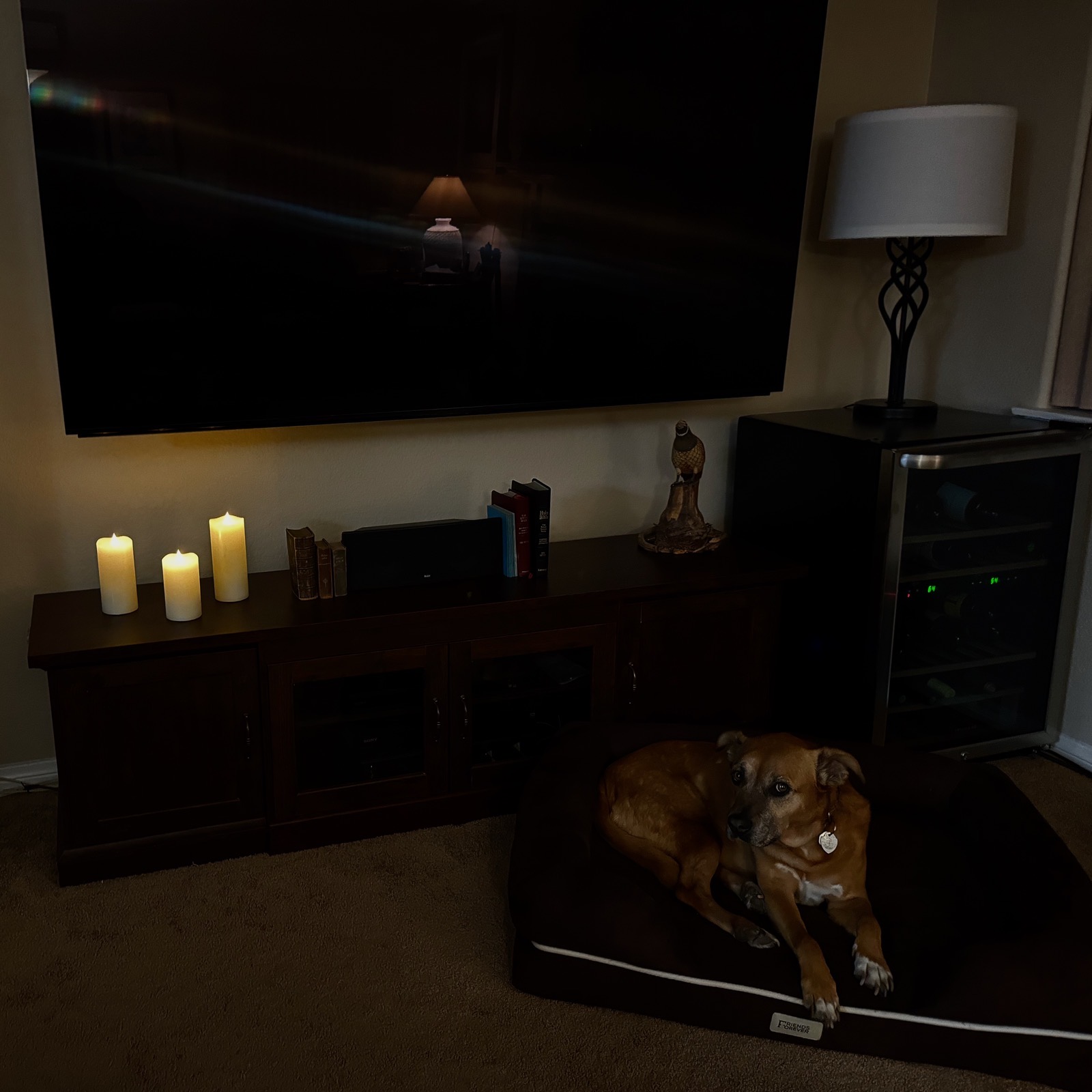 We had the TECHLONG candles in our bedroom for a week or so and while I liked them there, we eventually put them downstairs on the table under our TV. Every night we turn them on and they give a lovely glow to the room, and didn’t even have to hunt down a match.