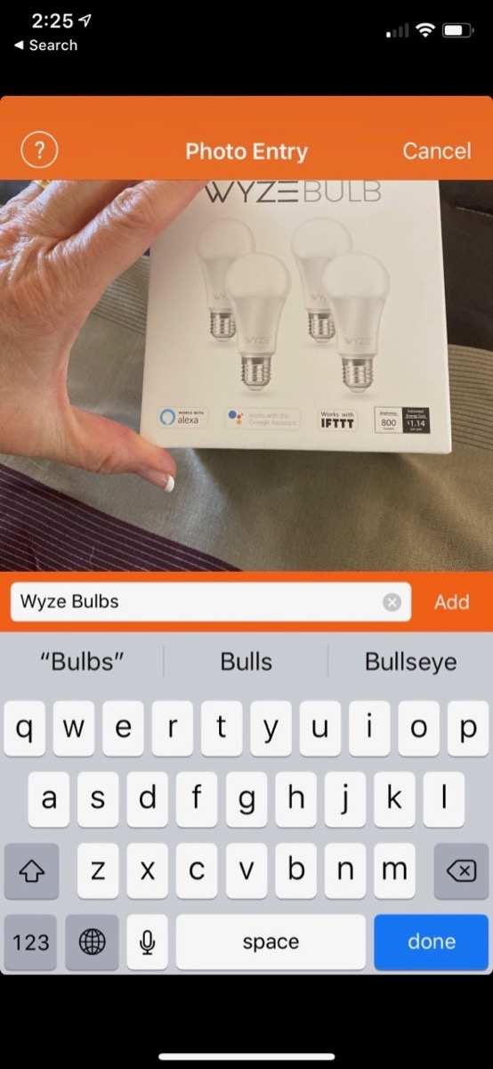 One option in taking photos is to scan a barcode. They highly recommend against using this feature, for the same reasons my insurance company said the receipts weren’t as important as pictures of us with our items. A barcode could be scanned from a store, so it’s really not going to help you for insurance purposes.