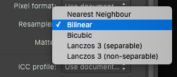 the most important thing Allister noticed in Affinity Photo was that when you hit the 2x or 3x export from their Export Persona, way over on the right hand side, there’s a pulldown to choose between Bilinear, Bicubic, Lanczos and Nearest Neighbor. It’s obvious that since they’re offering resampling methods, they are doing interpolation. In my defense, when we looked at Affinity Photo on my screen, those options weren’t showing. One problem with Affinity Photo is that the little palettes seem to somewhat randomly move around and cover each other up. The second row of palettes was covering up this option. When I pulled them down, those interpolation options were available to me.