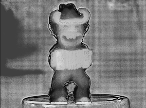 I stood him up on an upside down coffee mug in the kitchen, dragged out my tripod, and took 10 RAW images of him while I changed the focus manually from the closest brim of his hat, to his nose, to his silly teeth to the toes of his boots to the back of his ears.