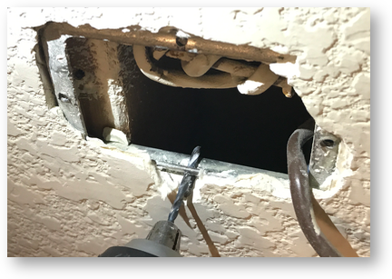 The reason that was a disaster, is because the screw holes lined up almost exactly with the very edges of the metal junction box. Instead of being able to use the nice screws and drywall plugs, we were going to have to drill into the very edge of a metal box with a lip on it, but only after chipping away enough drywall to reveal the junction box edges. And of course the plate we were going to have to attach was just a smidge smaller than the room we had on either side of the lip.
