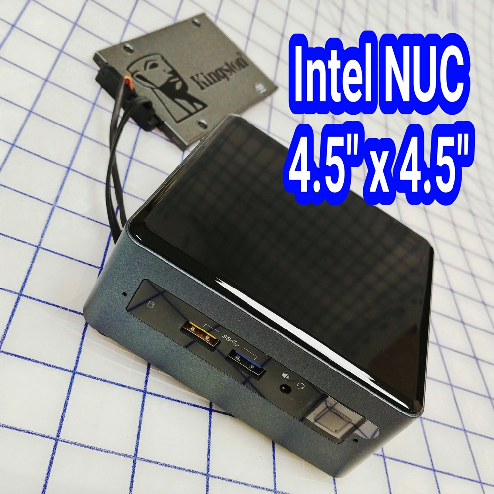 Those criteria led me to Intel’s 2018 Gemini Lake NUC running a new Quad Core “Pentium Silver” CPU. The barebones NUC is $169.60. Outfitted with 8GB of RAM and a 120GB Kingston SSD, the entire system cost $297. Linux OS and productivity software are free.