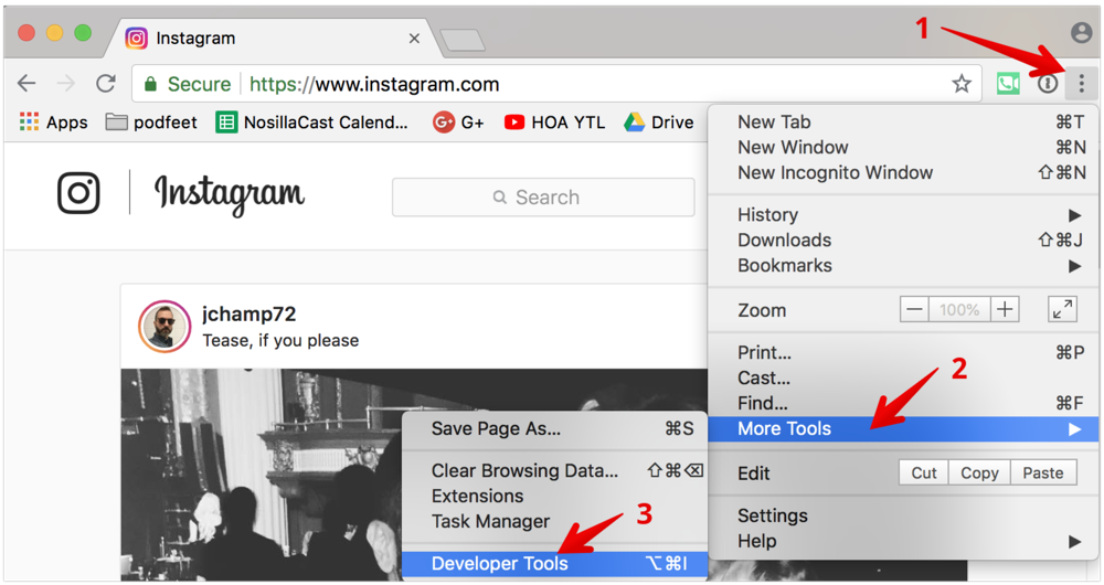 We don’t want to leave our Chrome and Firefox friends out in the cold, right? They should get to play on Instagram too! We’ll start with Chrome, which is surprisingly unintuitive.