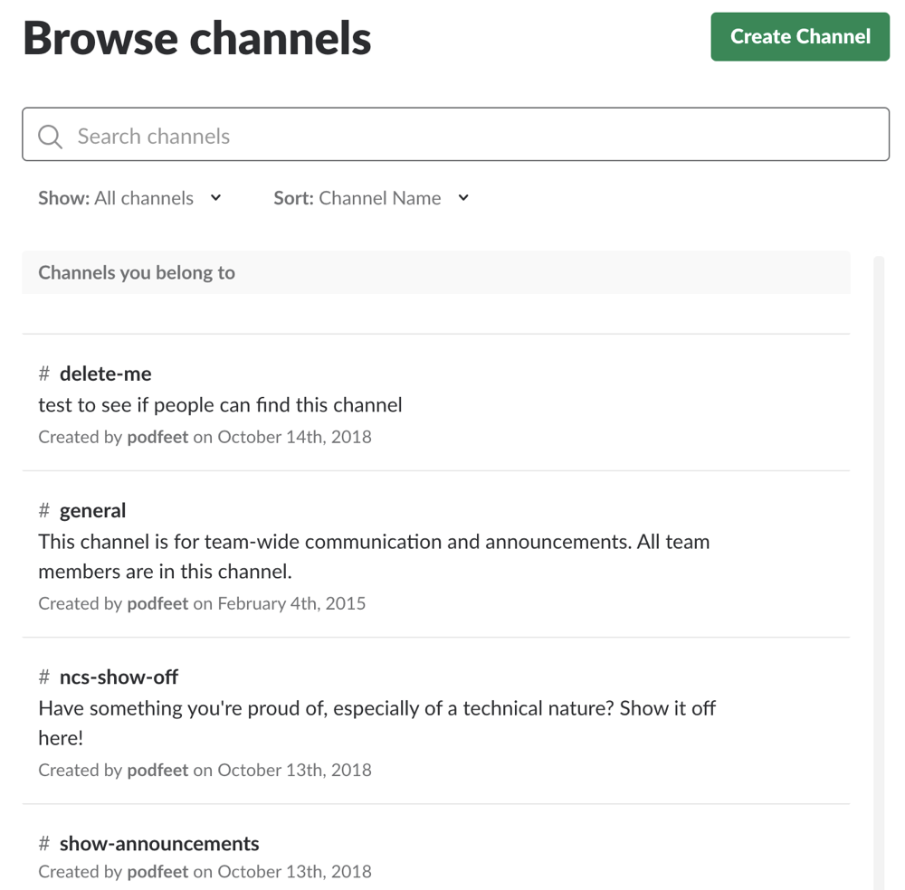 In the list of weird and annoying things about Slack is that channels are hard to discover. You can be invited into a channel (and some can be private invite-only channels) or you can attempt to find the public channels on your own.