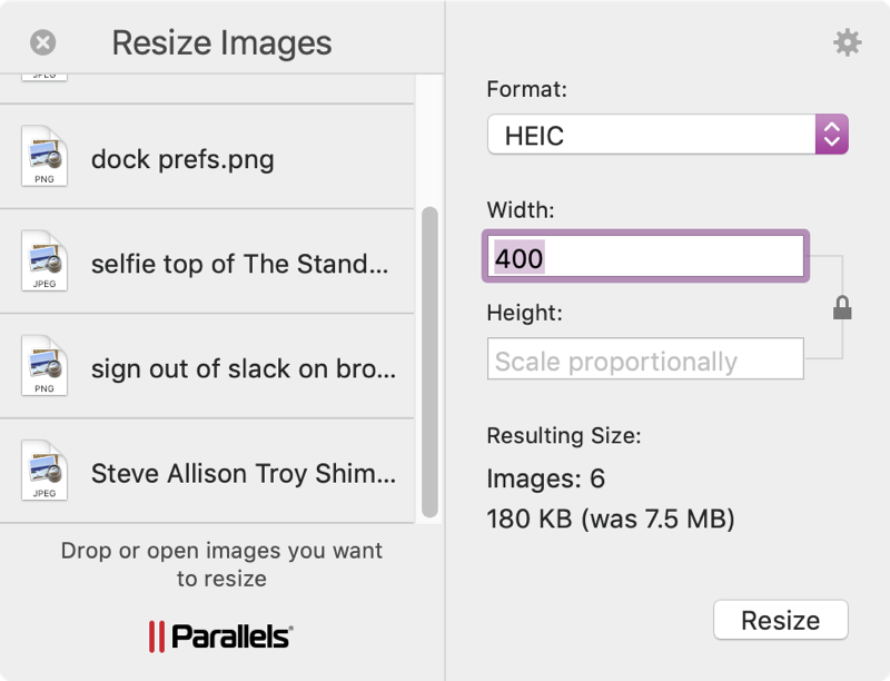 I did some pixel peeping on a couple of the images, and I could not see any degradation in the images even though I had saved 22% in file size. So maybe using Resize Images from within Parallels Toolbox is a cooler way than using the built-in tools to resize images after all. Plus, it’s right there in your toolbox already.