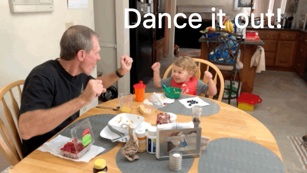 I made a GIF of Steve dancing at breakfast with our grandson Forbes, and of course, now I’m completely in love with GIFs!