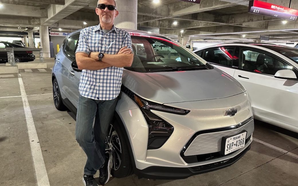 One of the problems with jumping straight from an internal combustion engine (aka ICE vehicle) to a Tesla is that Steve and I have no perspective at all on what normal EVs are like to drive or to charge. On our recent trip to Houston to visit our son, Kyle, we decided to rent an EV. Even though a Tesla Model 3 was available, we chose a Chevy Bolt so we could have that new experience.
