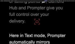But if you have the Elgato Prompter, you can use a third tab on that Camera Hub app. I can turn the power on and off with the Prompter. I noticed that when I turned it off, I still saw the glow of the lower monitor. It’s off, but not really, really off. I can also adjust the brightness of the prompter. Sometimes people say that if they have a very white background in this teleprompter, maybe it’s a chat channel or their notes, it can reflect into their glasses. So sometimes people will dim the brightness of this monitor, so it doesn’t quite reflect so much.