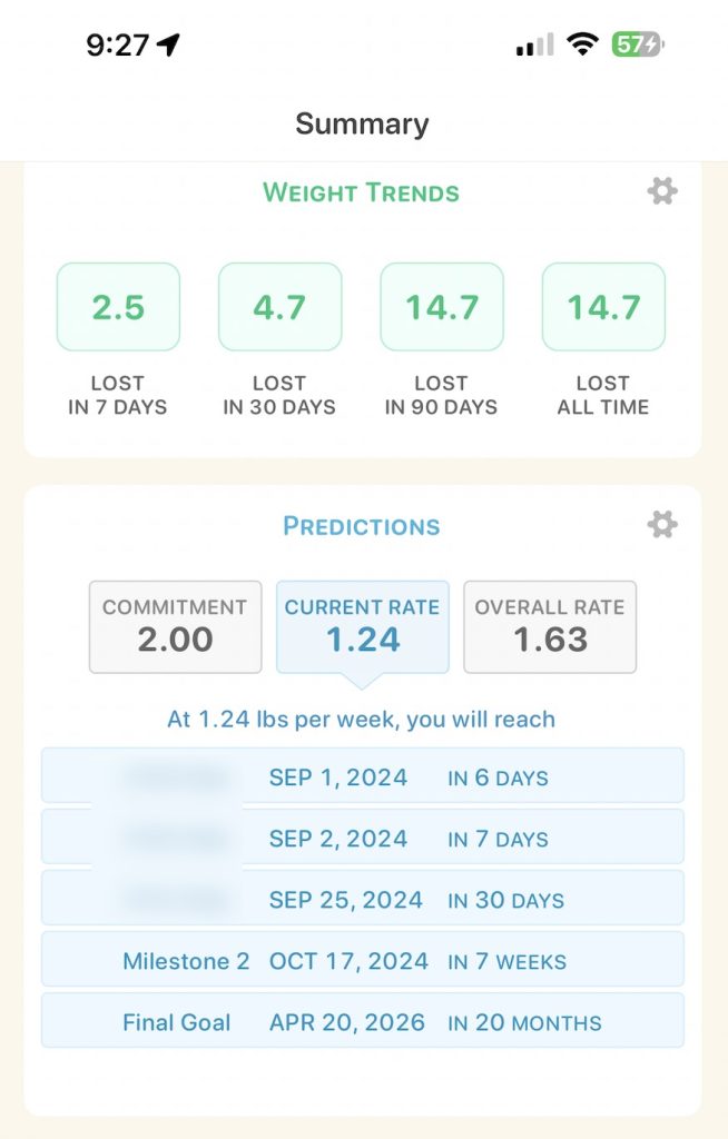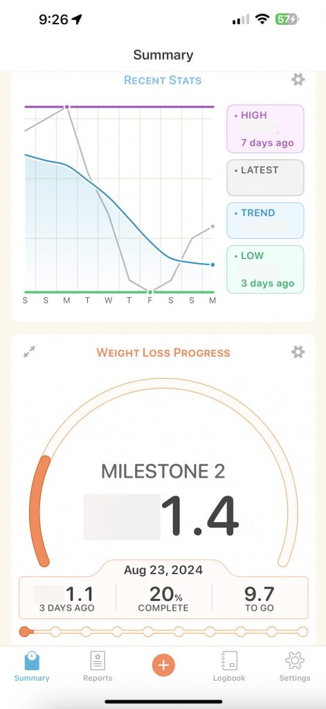 One way it keeps people motivated is to break a weight loss goal into ten steps. I’ve said on Start With Small Steps before that you want to ensure your goals are not so overwhelming. The way to succeed is to break the goal into smaller steps. Can you lose five pounds? Can you do it again? I really wanted to lose 110 pounds, which is intimidating. It can make a person demotivated and depressed that you will never get there. This app automatically does that for you. It takes whatever goal you want and breaks it into ten steps to have these mini successes. Yay, I lost 10% of my goal! Take a moment to celebrate, and give yourself another goal to keep going. That helps to make it a little bit easier.