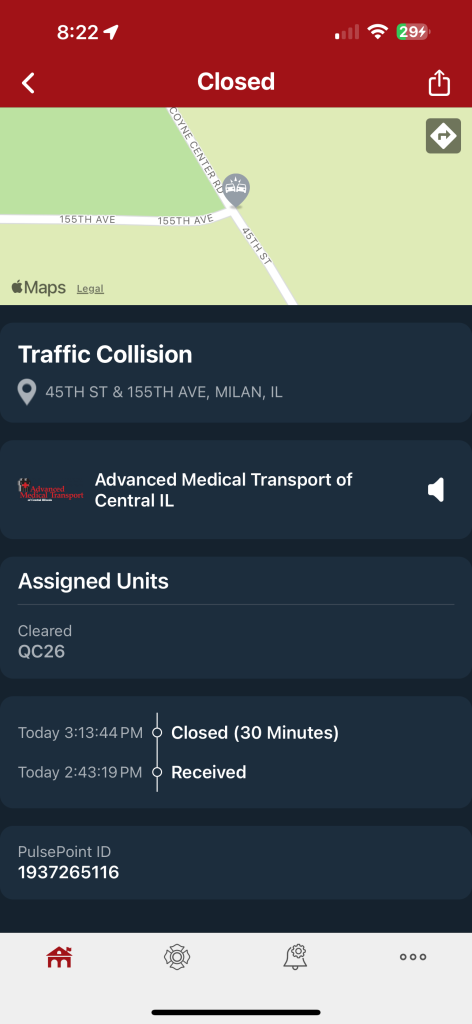 It uses location-based technology and connects people who are trained in emergencies. Those who are not can check the app to see what is happening. Maybe they know someone who can help. So, when I look at the app, I generally see fires, car accidents, medical emergencies, and a map. I can see what agencies have responded.