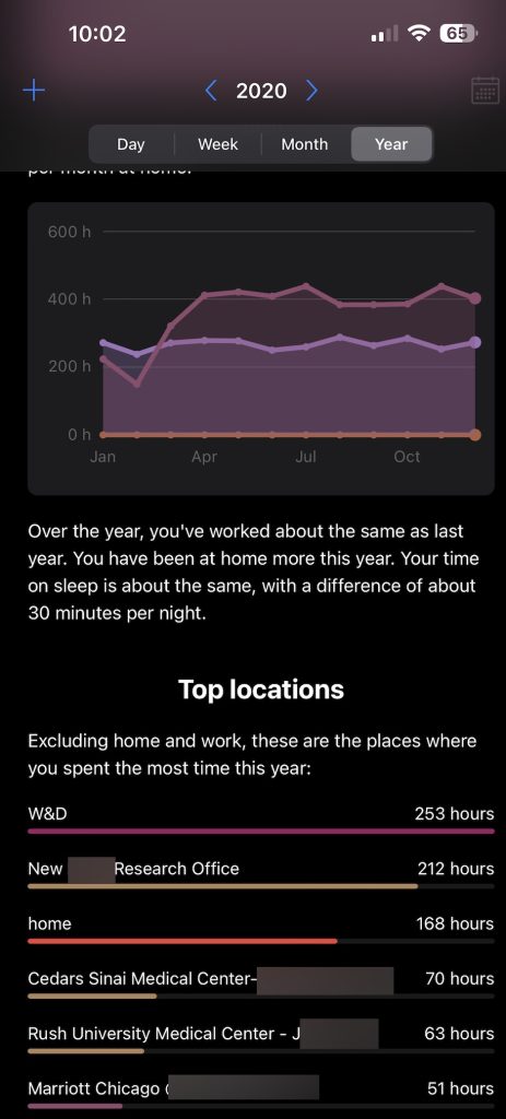 It can also detect whether you’re walking, probably by the speed, or driving to a location. So I could see how much time I was spending commuting every week. Guess what? By working from home, I saved myself 27 minutes a day. While working remotely in Los Angeles, I saved hours a day.