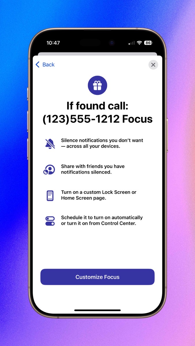 You’ll then be shown explanations of options to customize your Focus. Move to the next screen by tapping the Customize Focus button at the bottom.