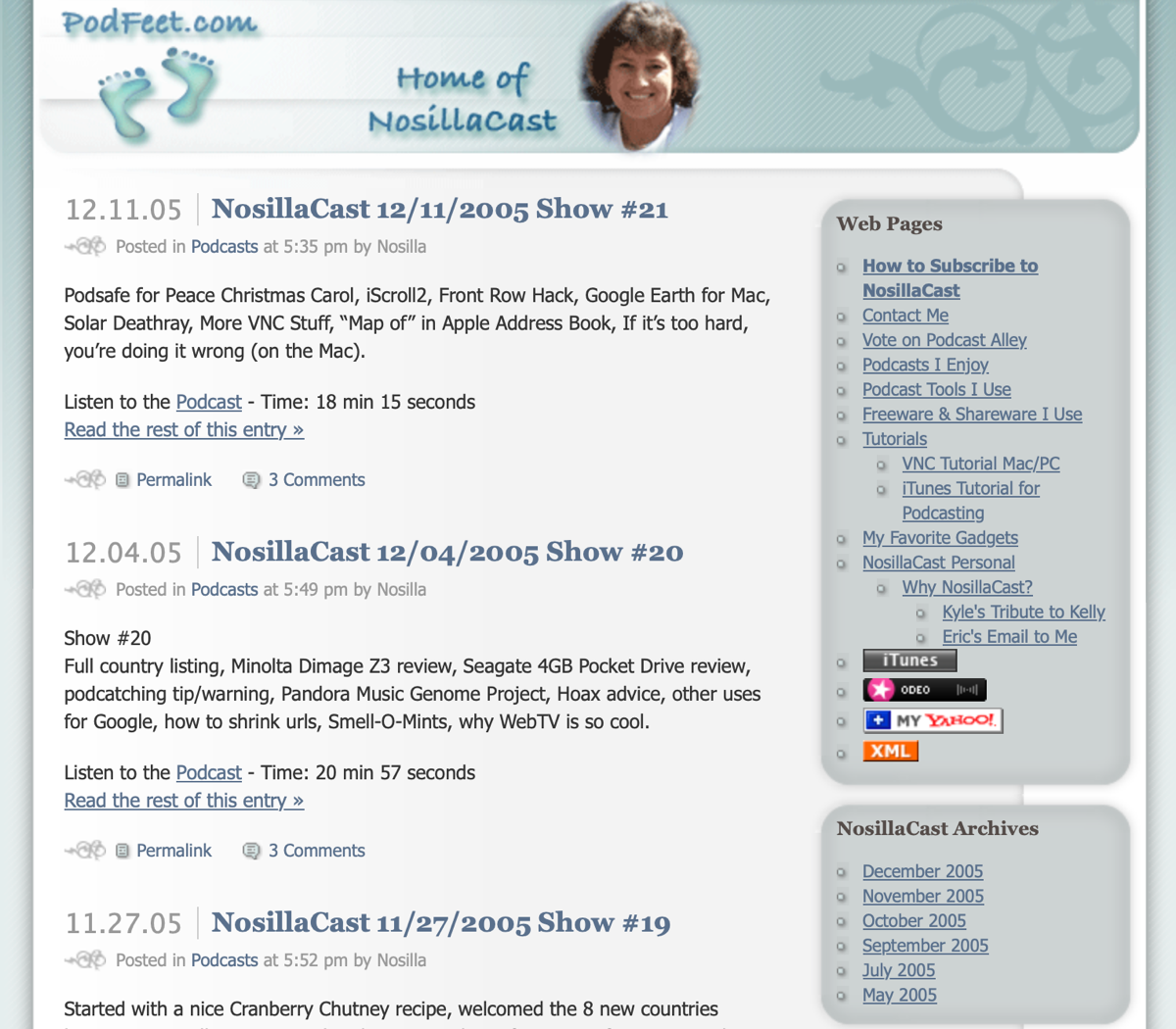 As you might guess, I’m pretty chuffed about hitting the 20-year milestone for the NosillaCast. I’m also very proud to have the longest-running Apple Podcast. I can’t celebrate without honoring those who came before me, though.