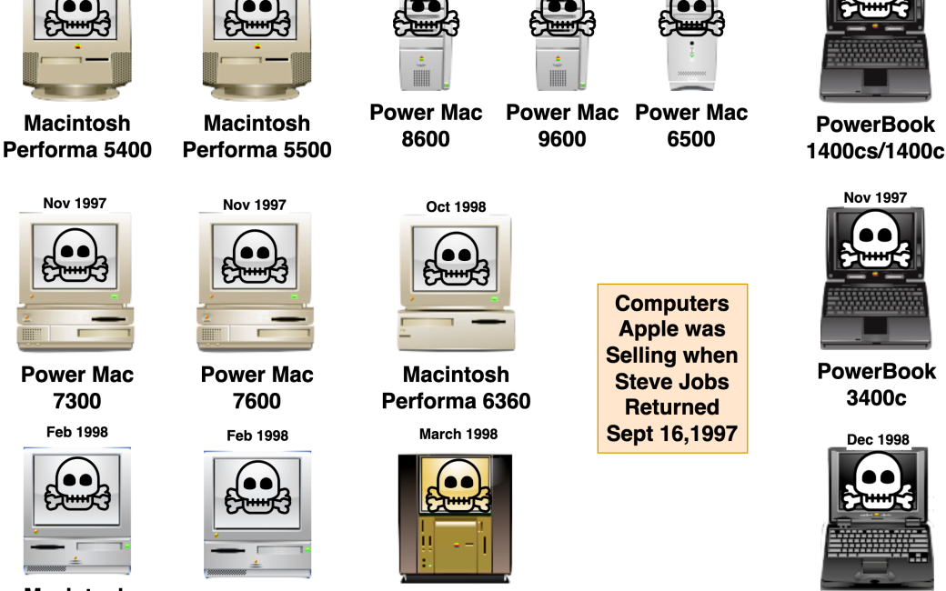 I’ve been obsessed with diagramming the new Mac models recently and in discussion with Tom Merritt of the Daily Tech News Show we started thinking about how things were at Apple before Steve Jobs’s triumphant return to Apple on September 16, 1997. Steve looked at the product lineup and immediately saw that there were far […]