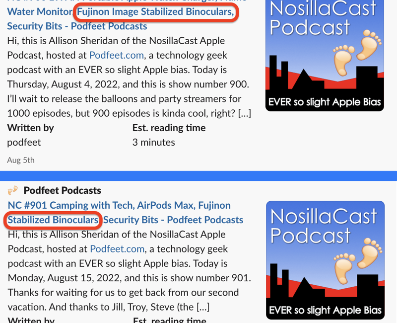Duplicated Recording in NC #900 & å#901 Courtesy Allister If you’re an alert listener to the NosillaCast, you may have noticed that I played Steve and my conversation about the Fujinon image-stabilized binoculars twice in a row on shows 900 and 901. Luckily there was a lot of content for the show on Monday, August […]